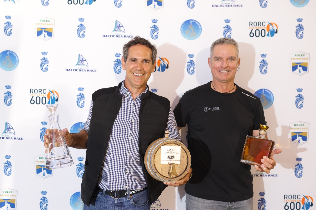 Special awards included: Mariella Trophy Challenge Trophy for best classic boat over 40 years old went to Caccia Alla Volpe sailed by Rocco Falcone; Best Caribbean boat went to Pamala Baldwin’s Liquid; the Bella Mente Trophy for the first yacht to finish that is manually powered without either variable or moveable ballast went to Shelter Island Transatlantic Partners’ Prospector, First monohull past St Maarten, winning an FKG rum barrel went to Skorpios, First multihull past St Maarten, winning an FKG rum barrel went to Argo and the RORC Caribbean Series Trophy for best combined score in the RORC Transatlantic Race and RORC Caribbean 600 was awarded to Comanche.